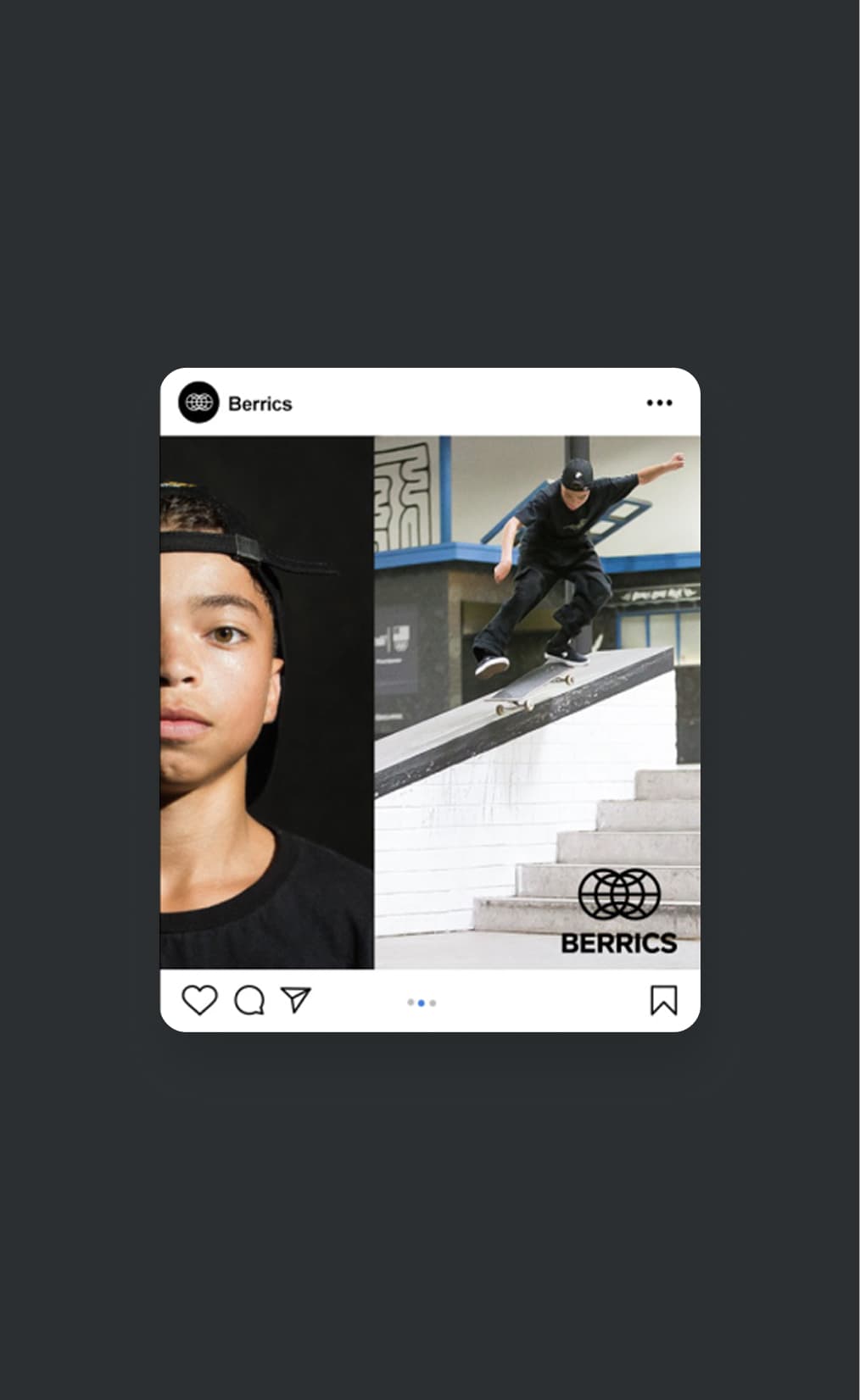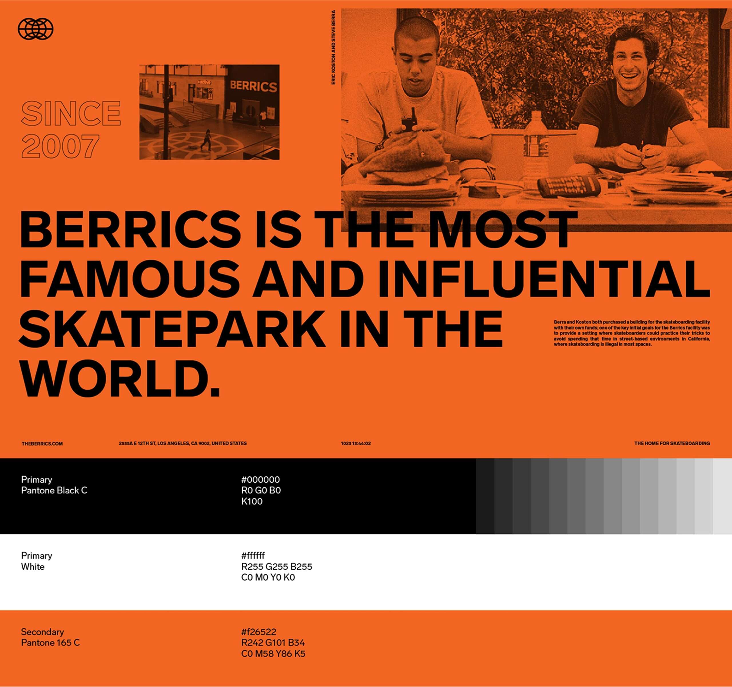 The result is a simple, versatile logo that reflects the unity and diversity at Berrics’ core. Designed to cover a broad product range, it draws on the minimalism of the original brand while adding expressive touches.