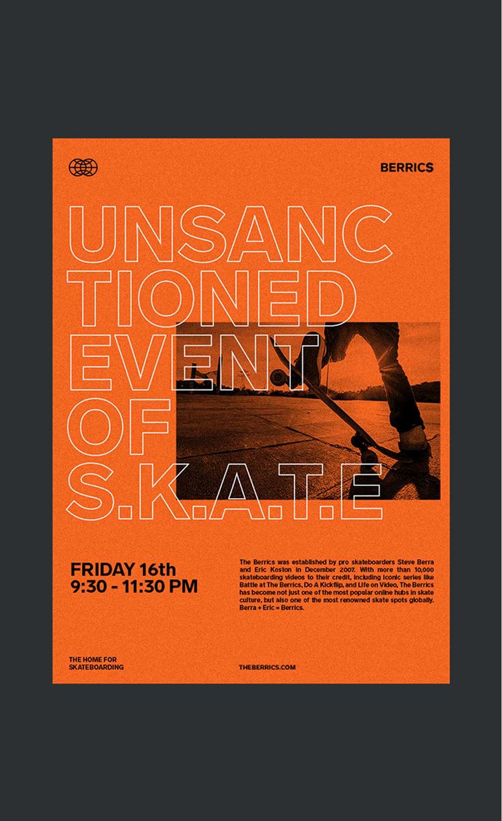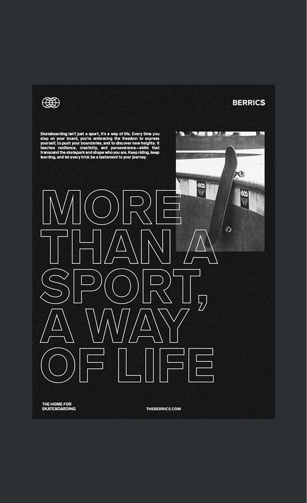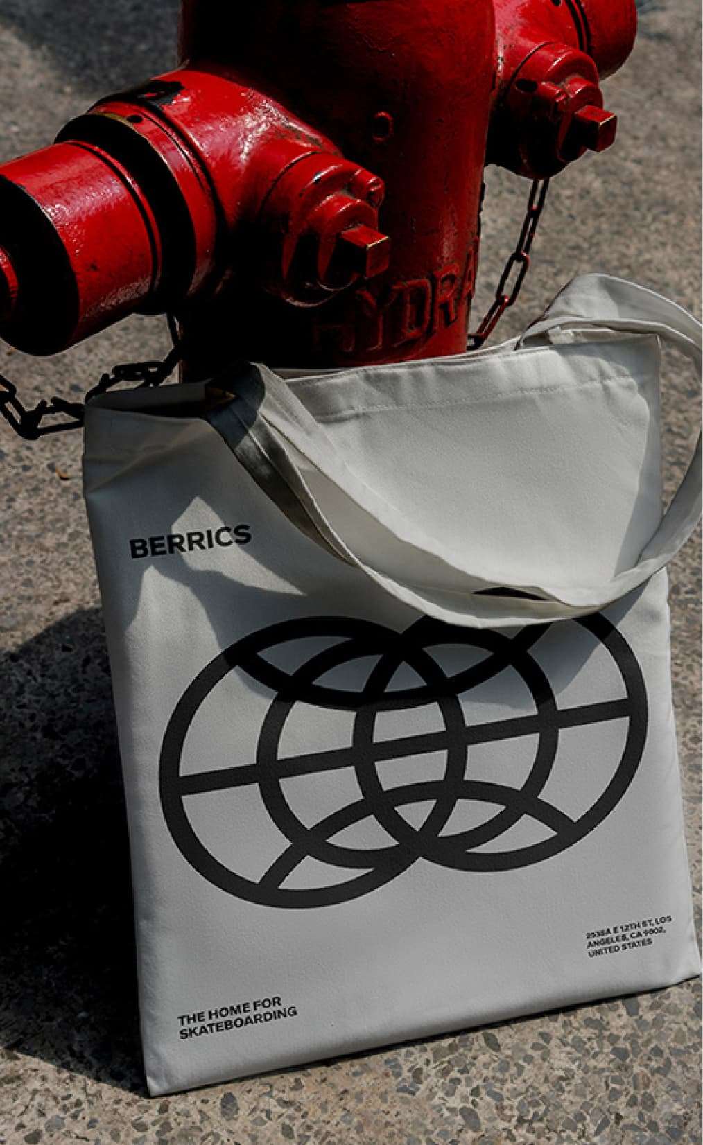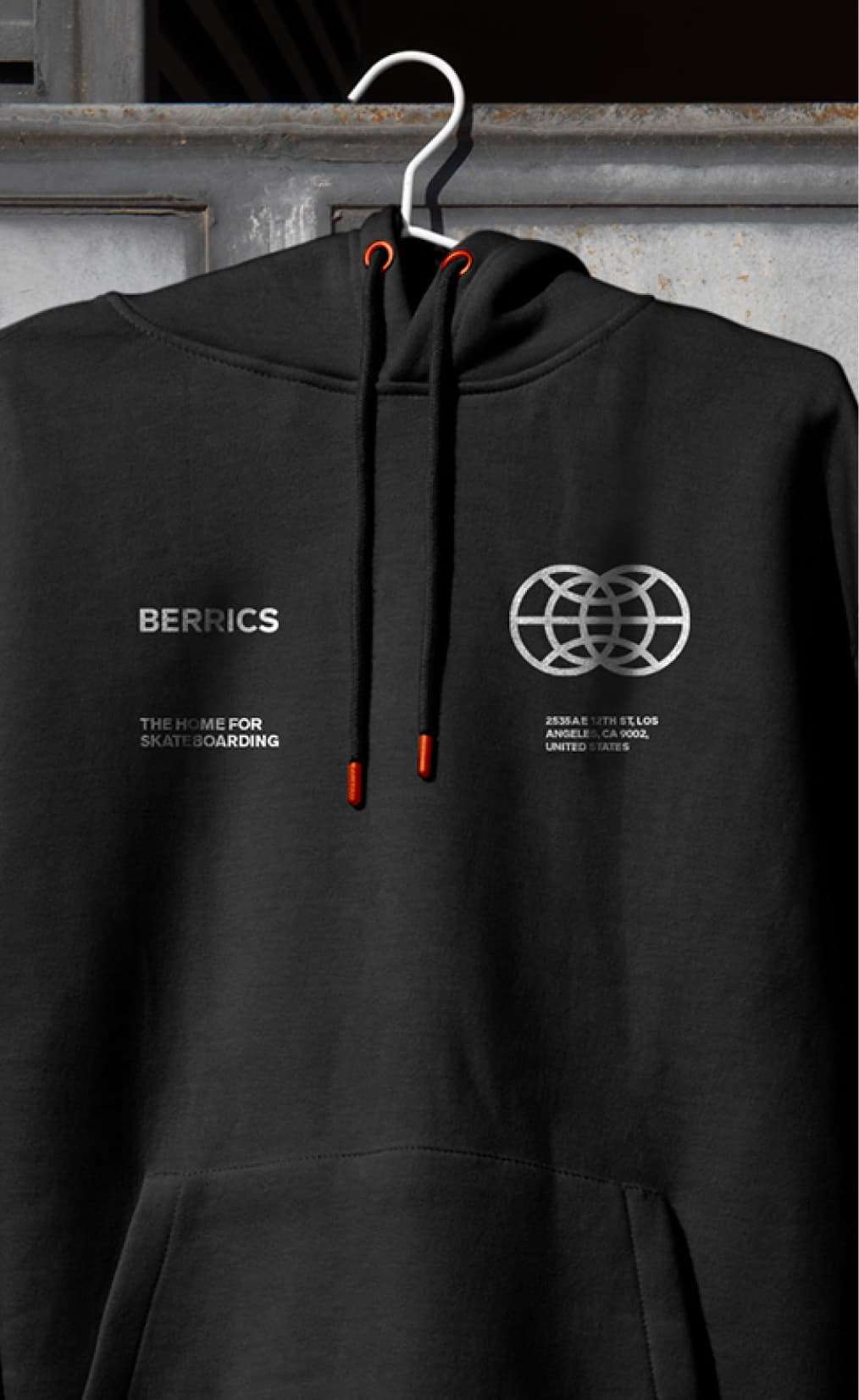 Simple, versatile logo reflects unity and diversity at The Berrics’ core. Created for diverse product range, drawing from original brand. Examples showcase its adaptability and versatility.