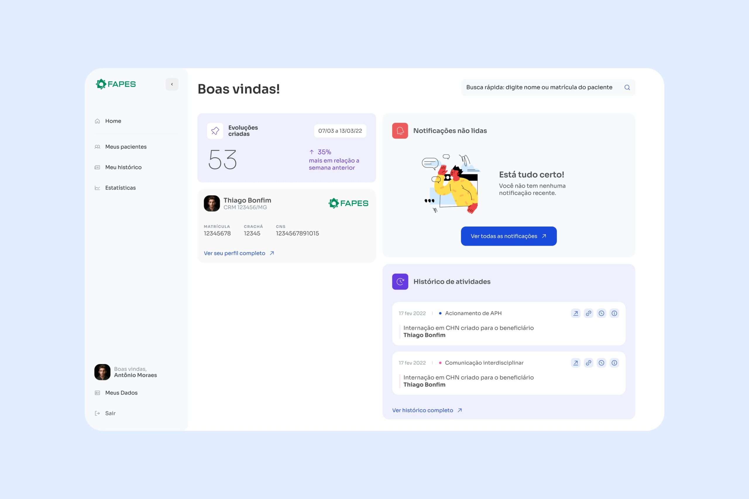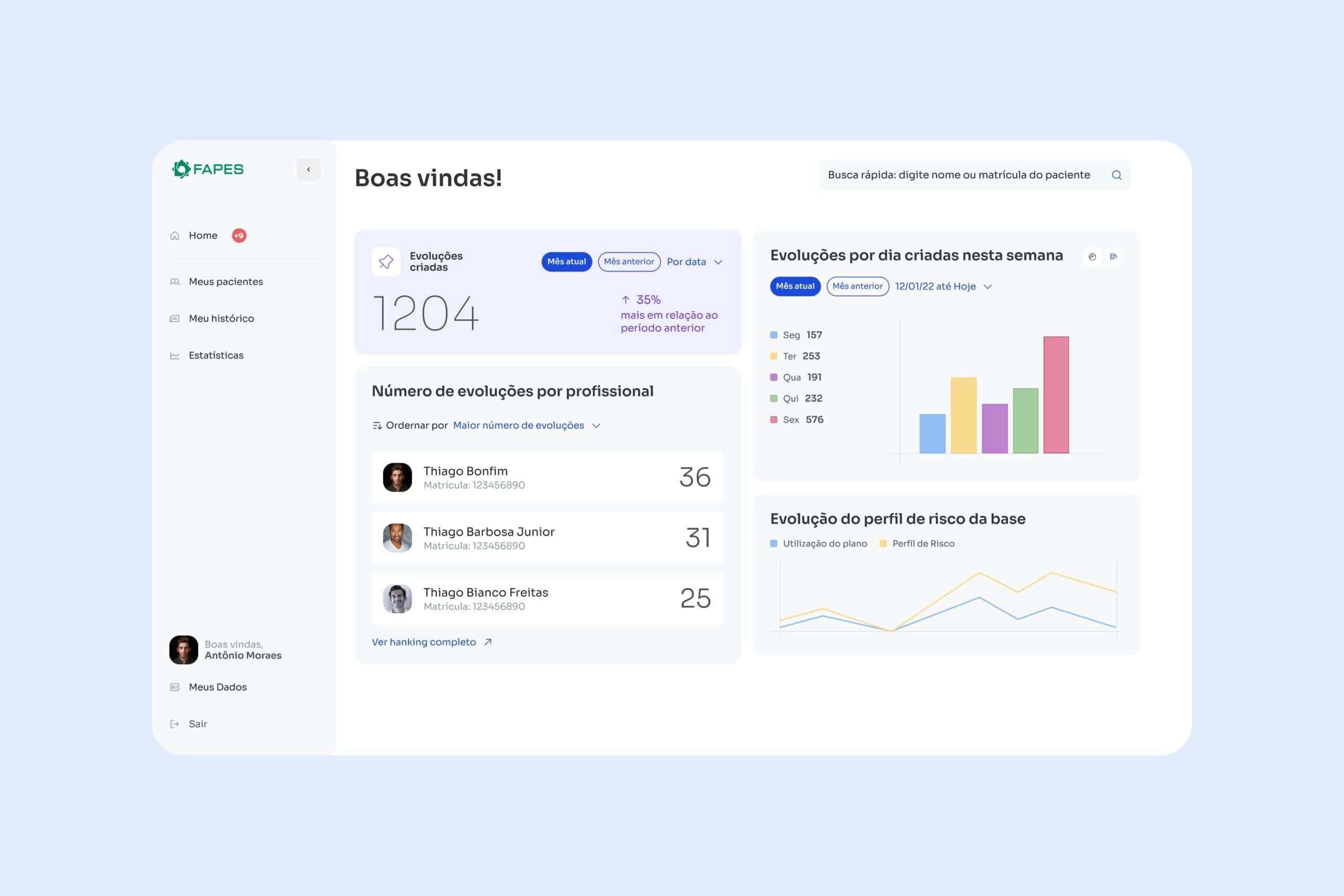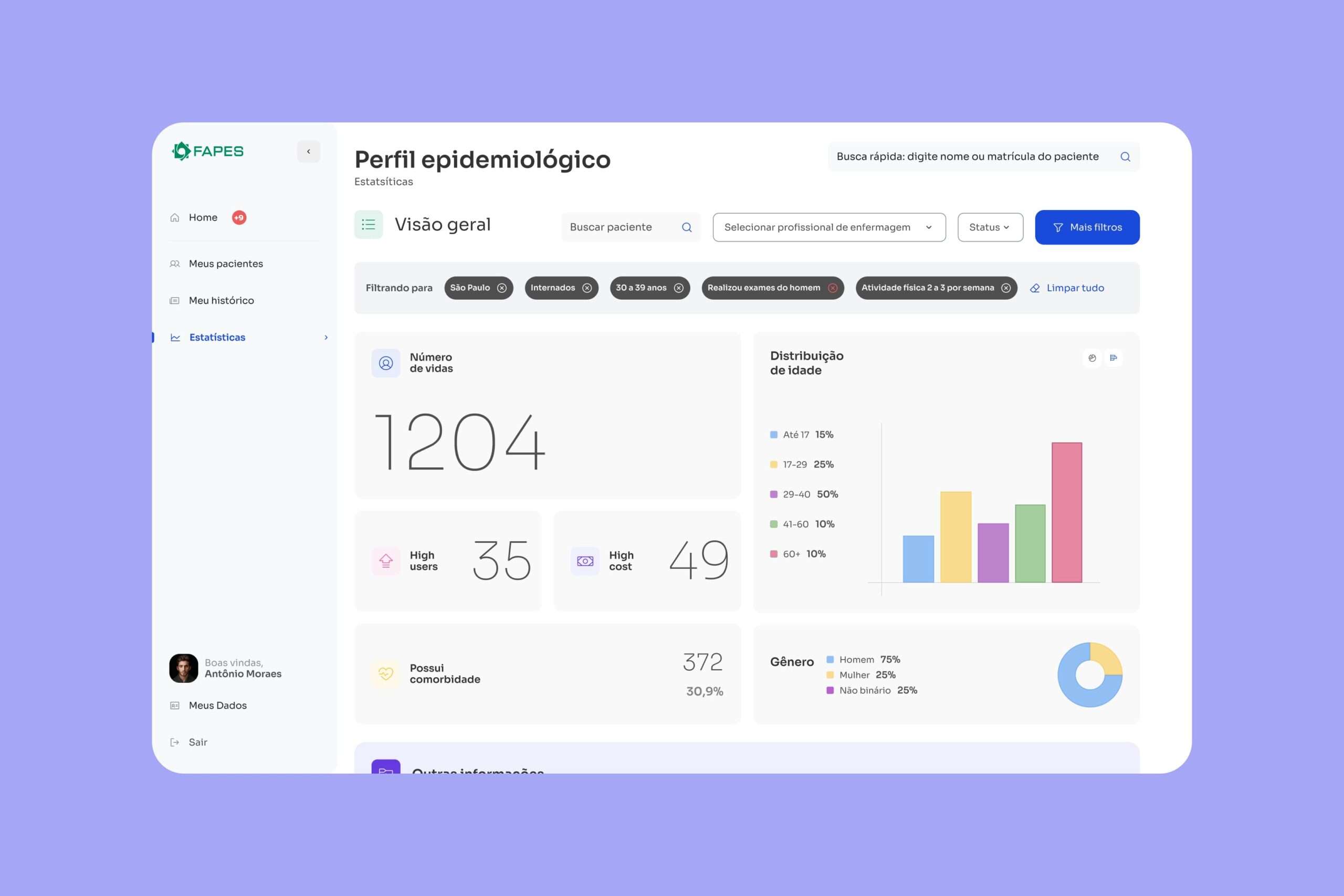 The goal was to create a comprehensive dashboard that would allow healthcare professionals to gain deeper insights into the lives they care for. This dashboard would serve as a data control system, enabling informed decision-making, efficient resource allocation, and monitoring of patients covered by FAPES.
